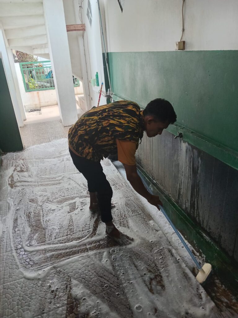Mereka juga menyalurkan alat kebersihan, tanaman hijau, dan perlengkapan sanitasi agar rumah ibadah tetap bersih serta asri.