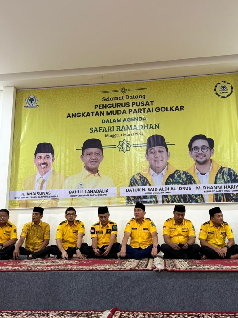 Padang – Angkatan Muda Partai Golkar (AMPG) Sumatera Barat menggelar Safari Ramadhan 2026 di Padang dengan rangkaian buka puasa bersama dan aksi berbagi bantuan sosial. Kegiatan ini mempertemukan jajaran pengurus daerah, kader muda, serta masyarakat dalam suasana penuh kebersamaan.